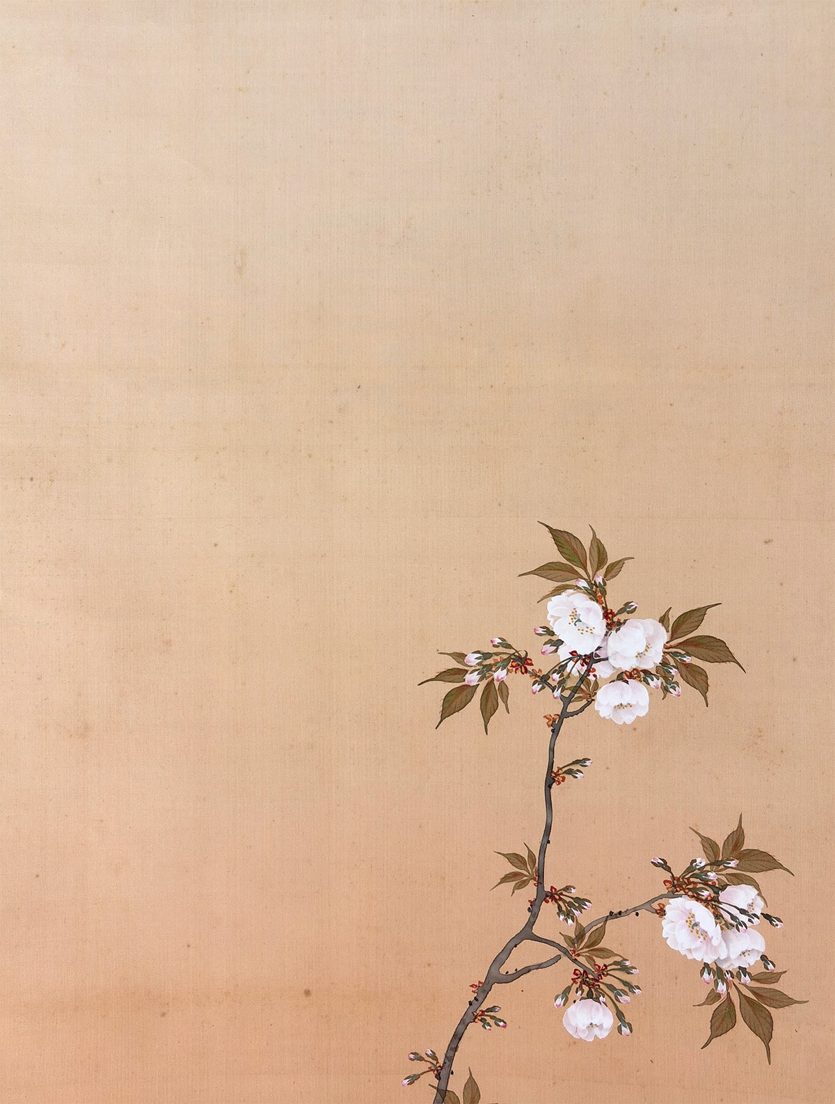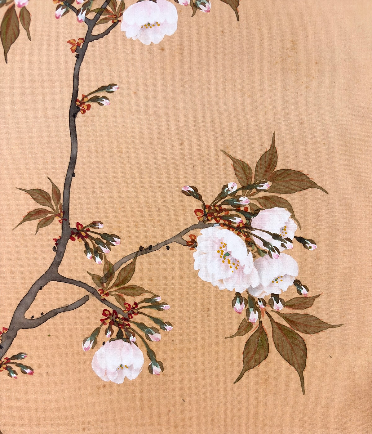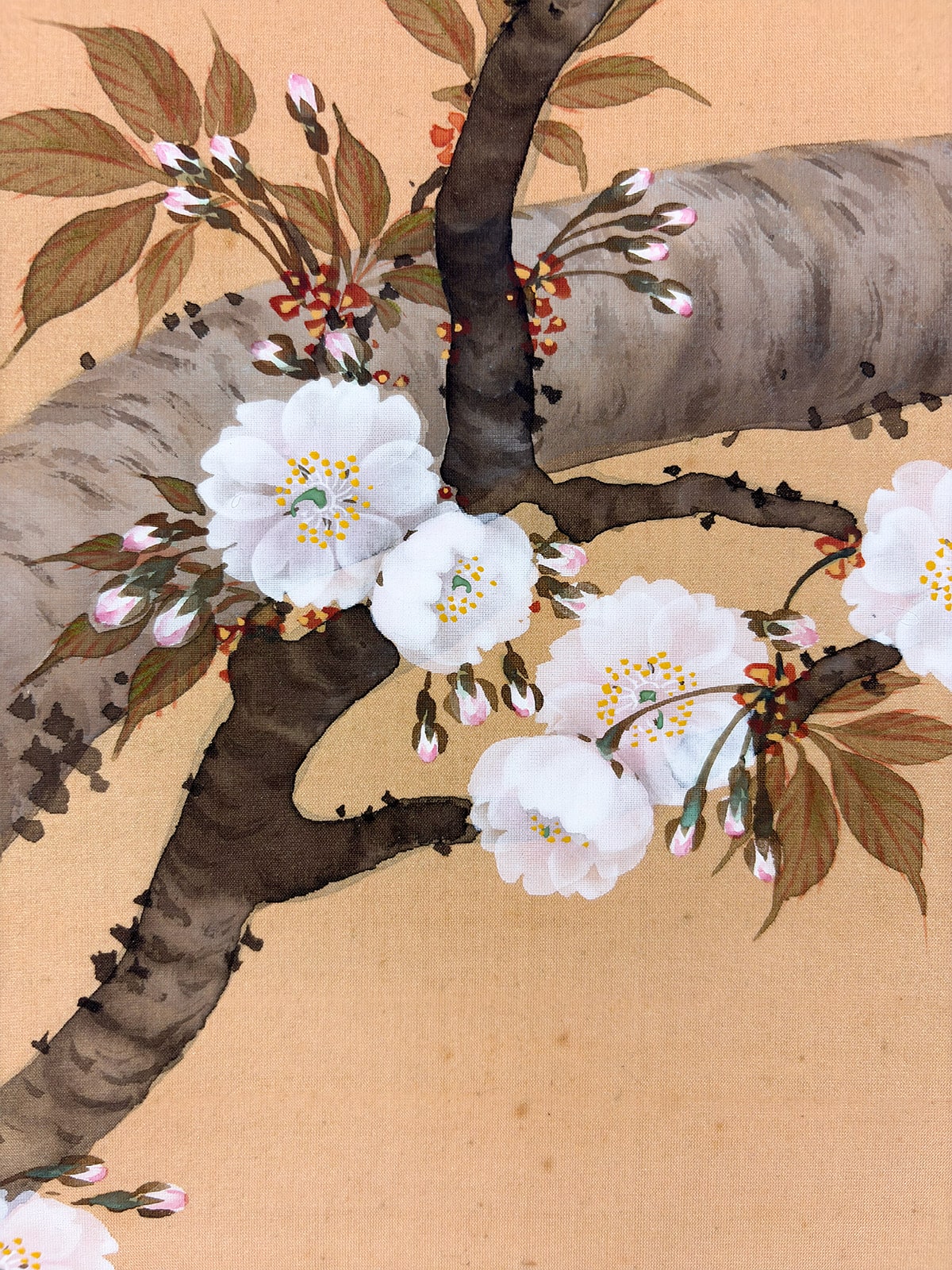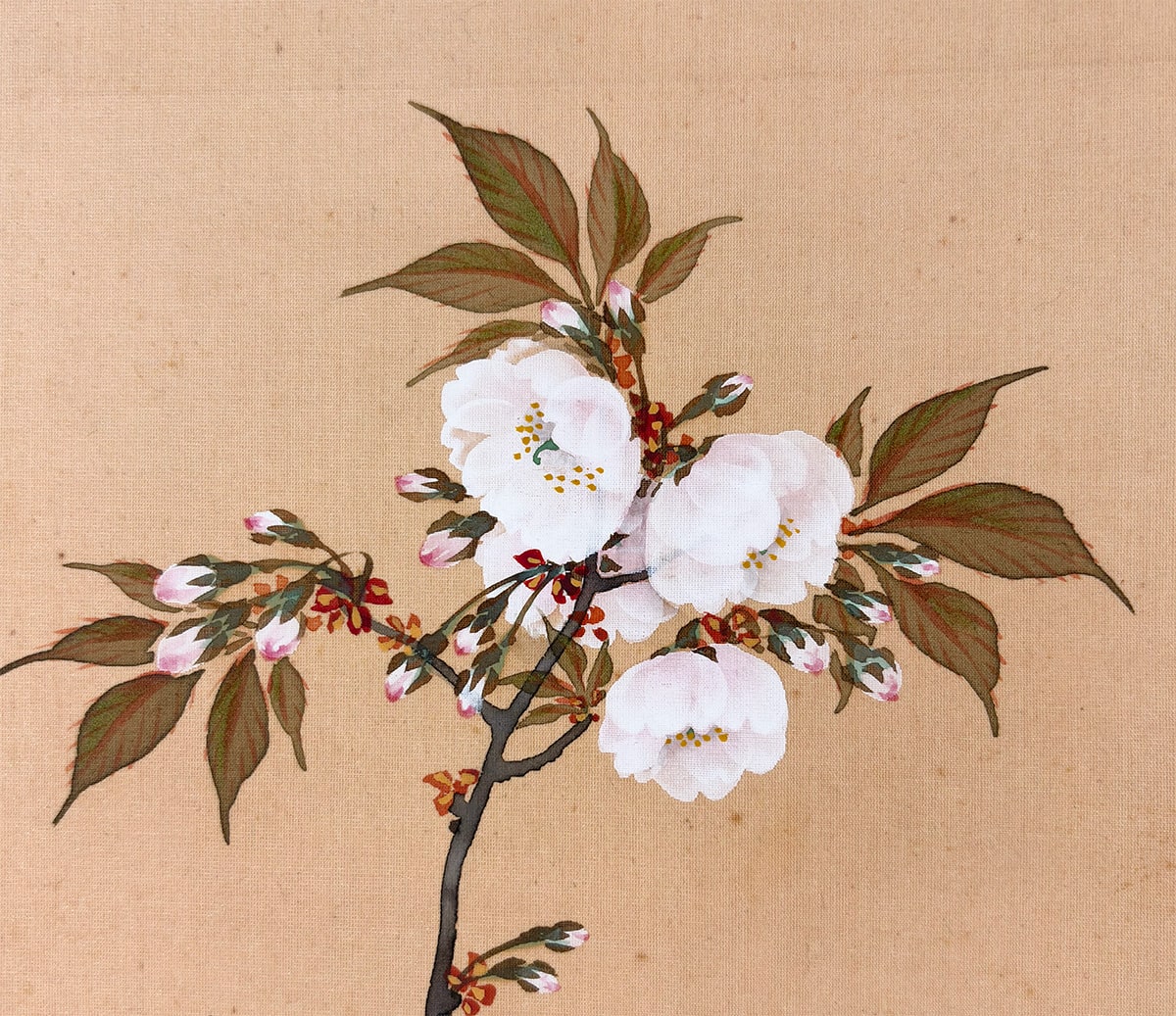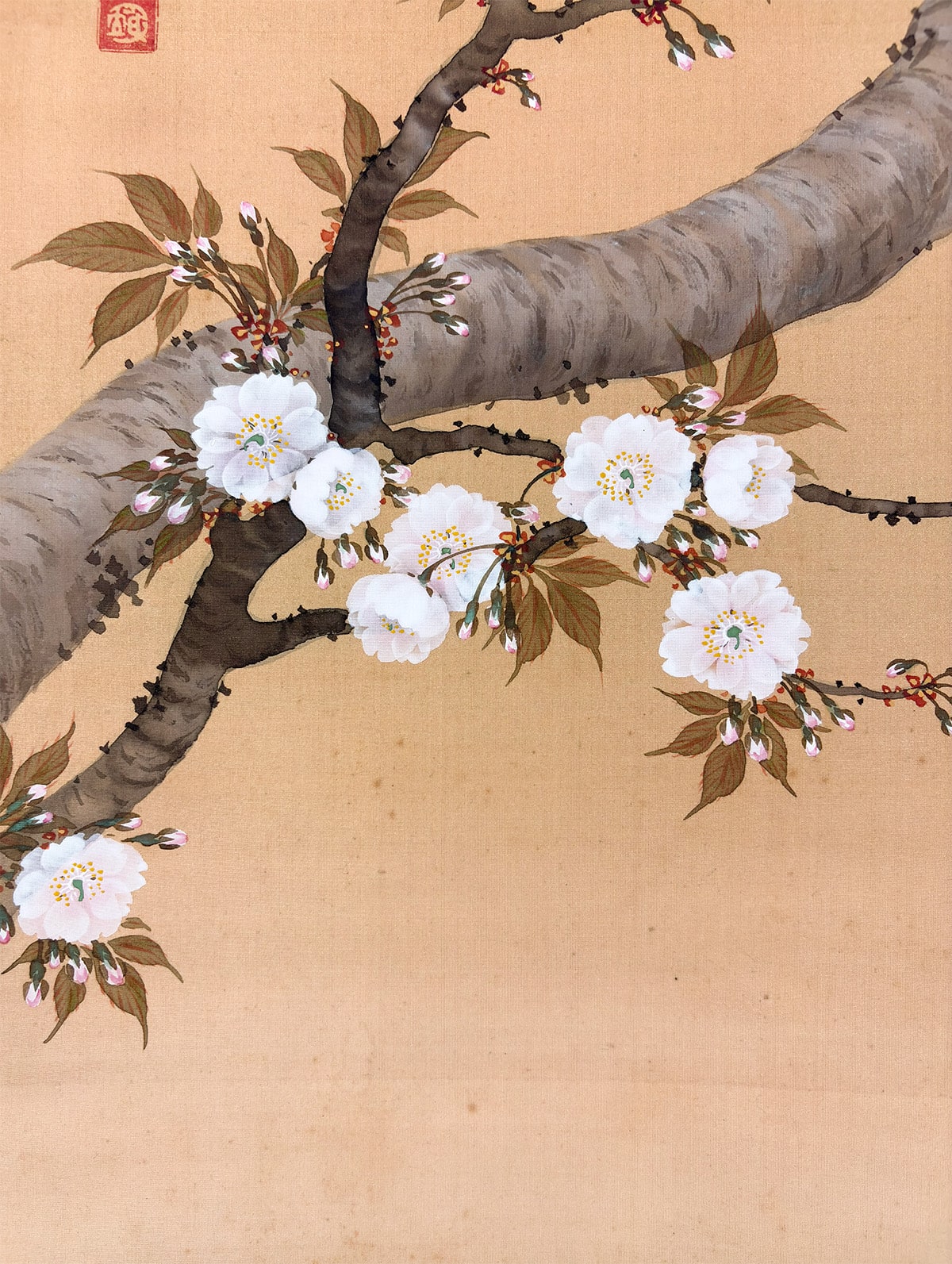 ●柔らかな朝日を受けて咲きほこる桜を描いた《旭日桜花》は、一日の始まりを象徴する光と、春の生命力を宿す桜が調和した、たいへん縁起のよい題材です。
