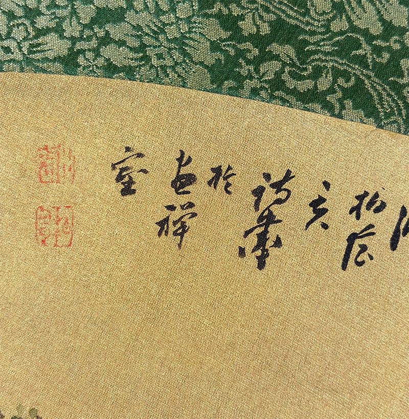 上部には端正な書が添えられ、画と書が一体となった、古雅な趣のある一幅に仕上がっています。