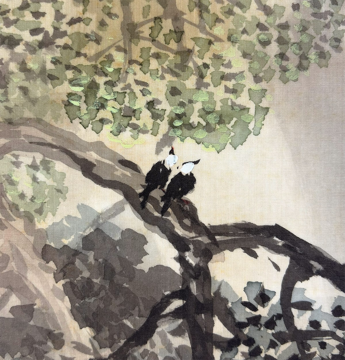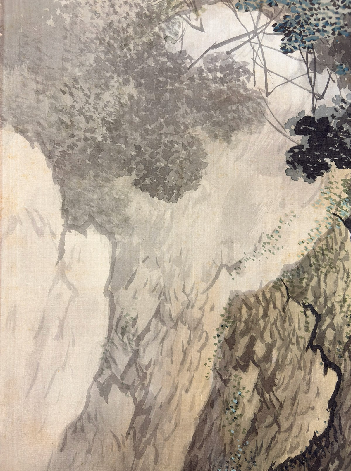 細やかな筆致で描かれた樹木や岩の表情には、隣斎の確かな技量が感じられ、眺めるほどに自然の息づかいが伝わってくる作品です。