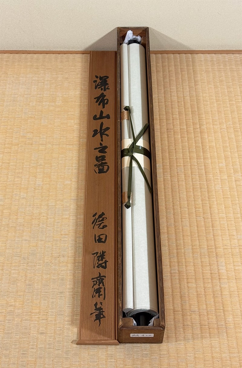 ●《瀑布山水》徳田 隣斎 作 絹本絹本(尺八立)