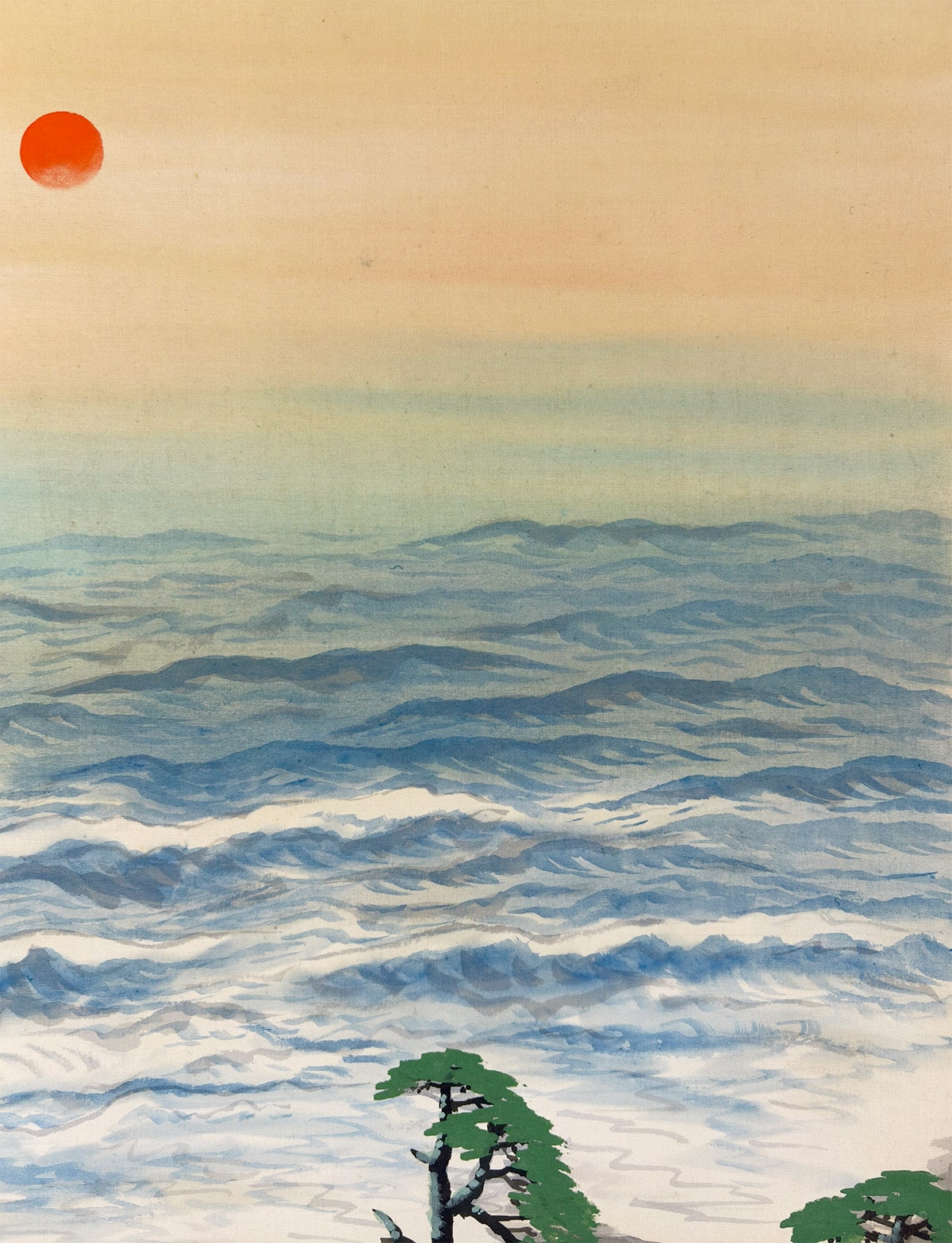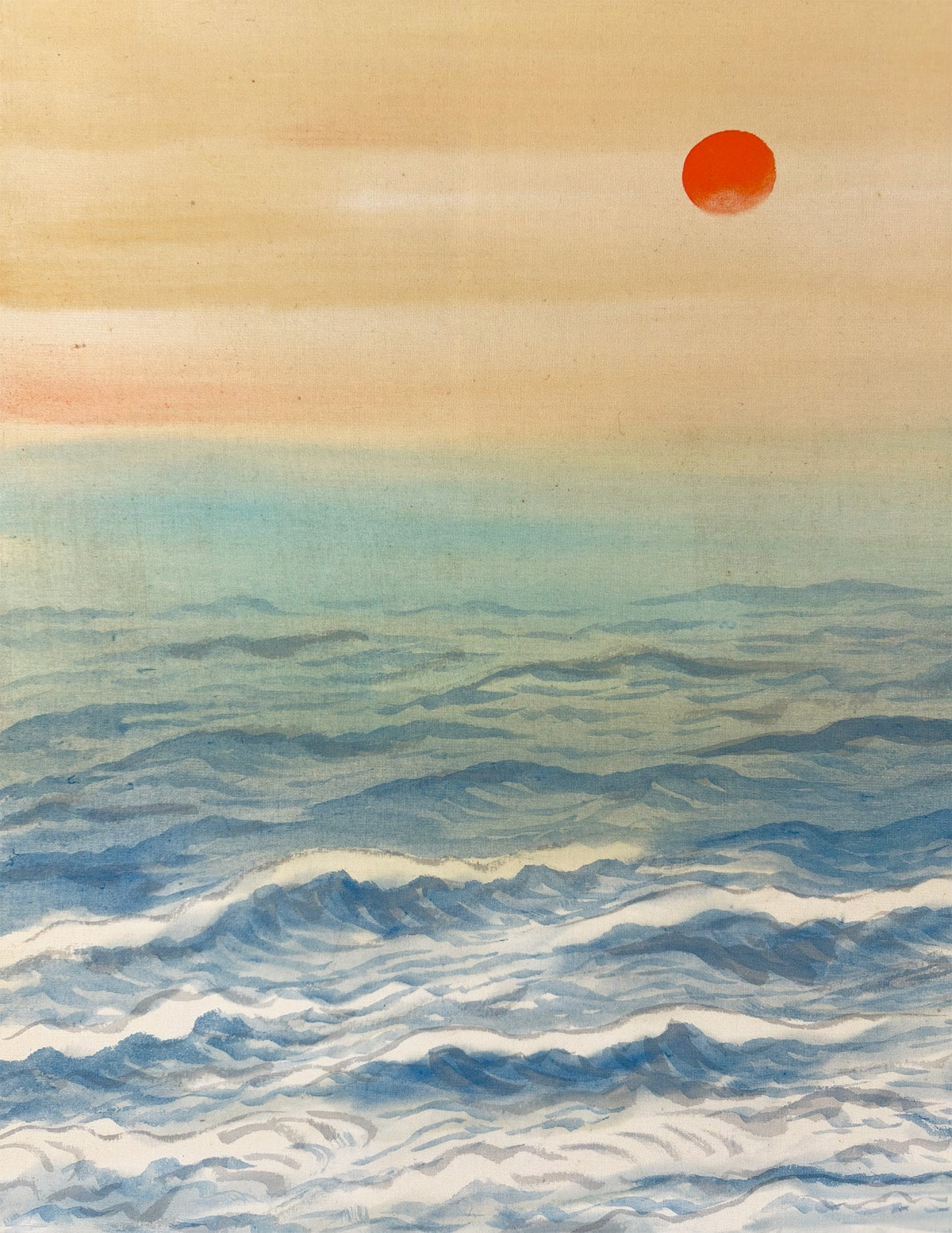 ●春之海は、春の訪れを告げる穏やかな海原に、赤く昇る朝日が静かに浮かぶ吉祥の一幅です。