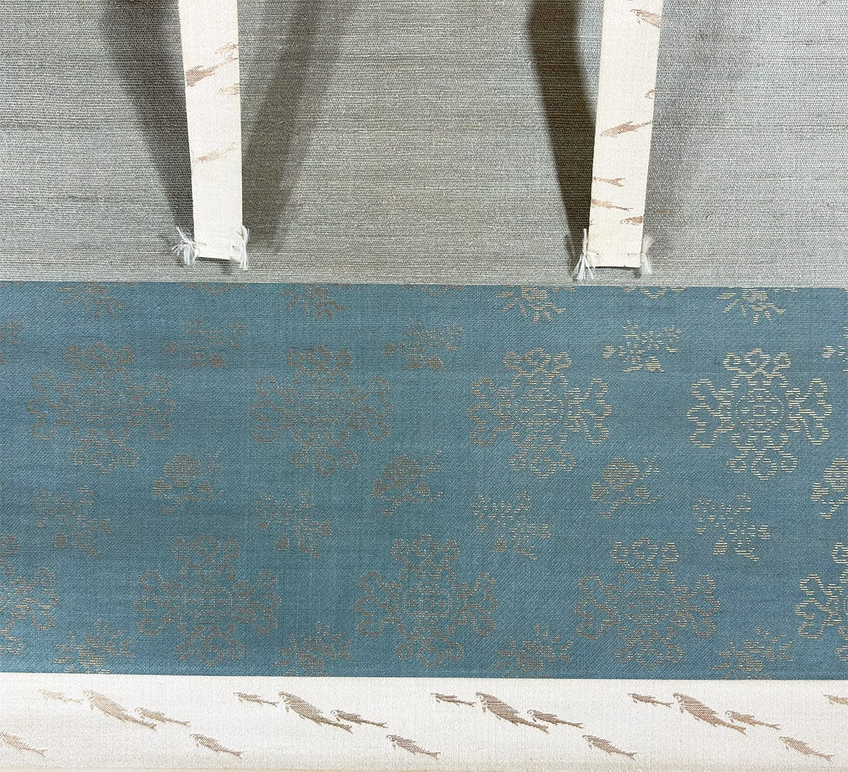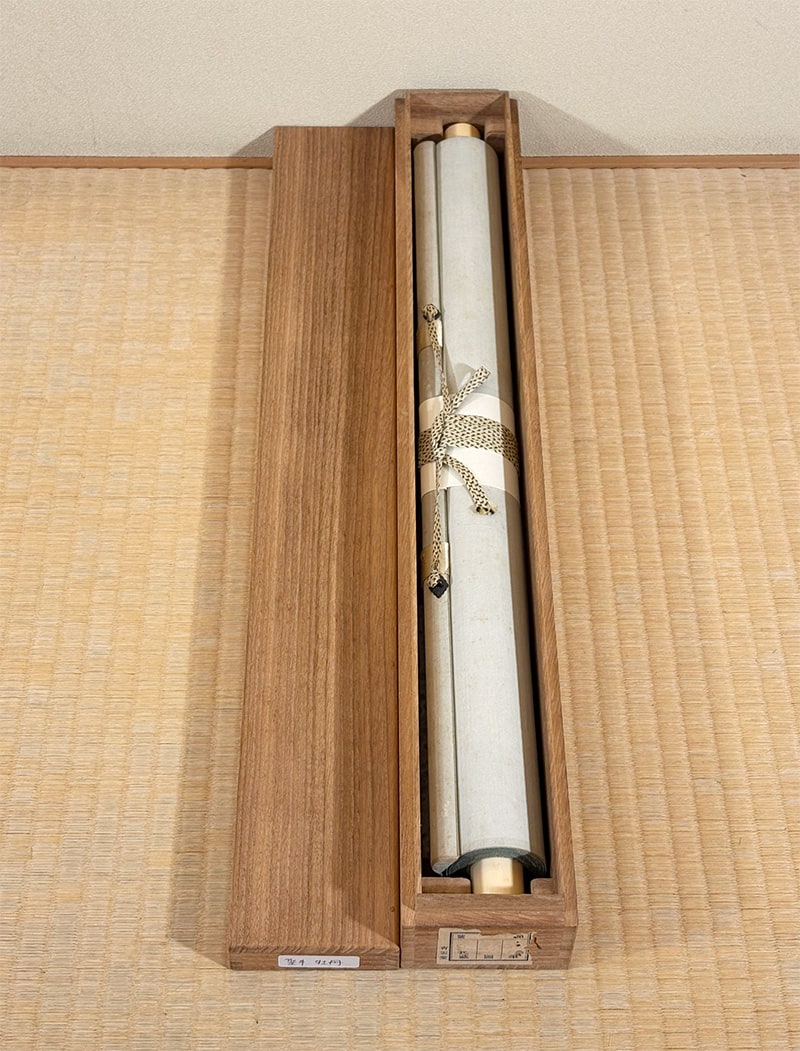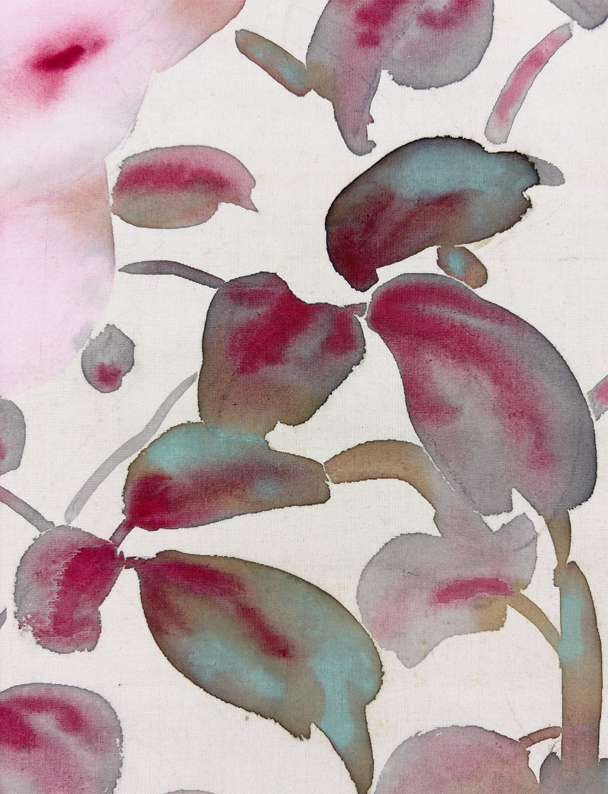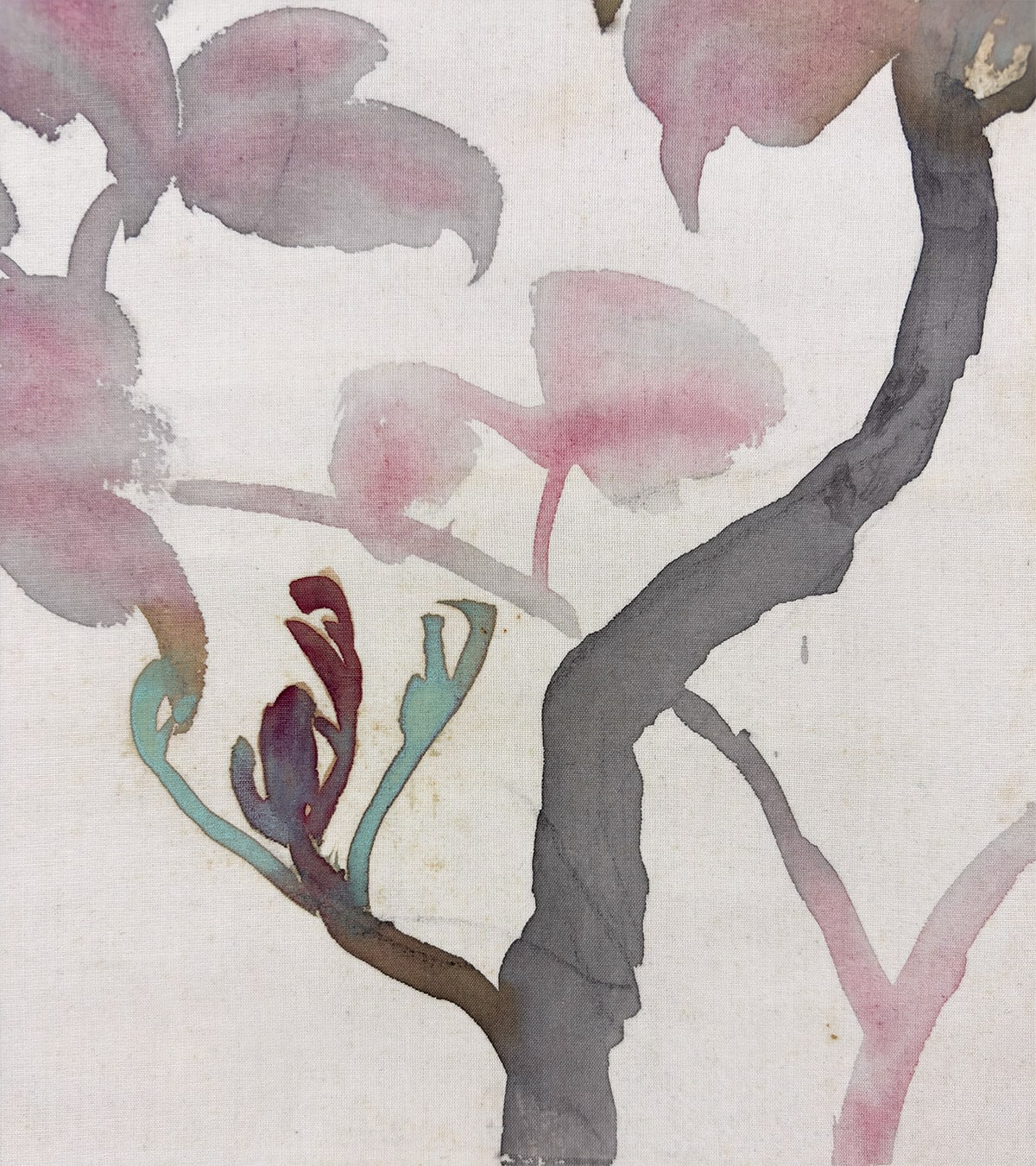 ふっくらと咲き誇る牡丹を、清らかな色調と落ち着いた筆づかいで描いた一幅です。