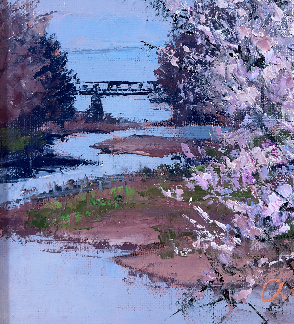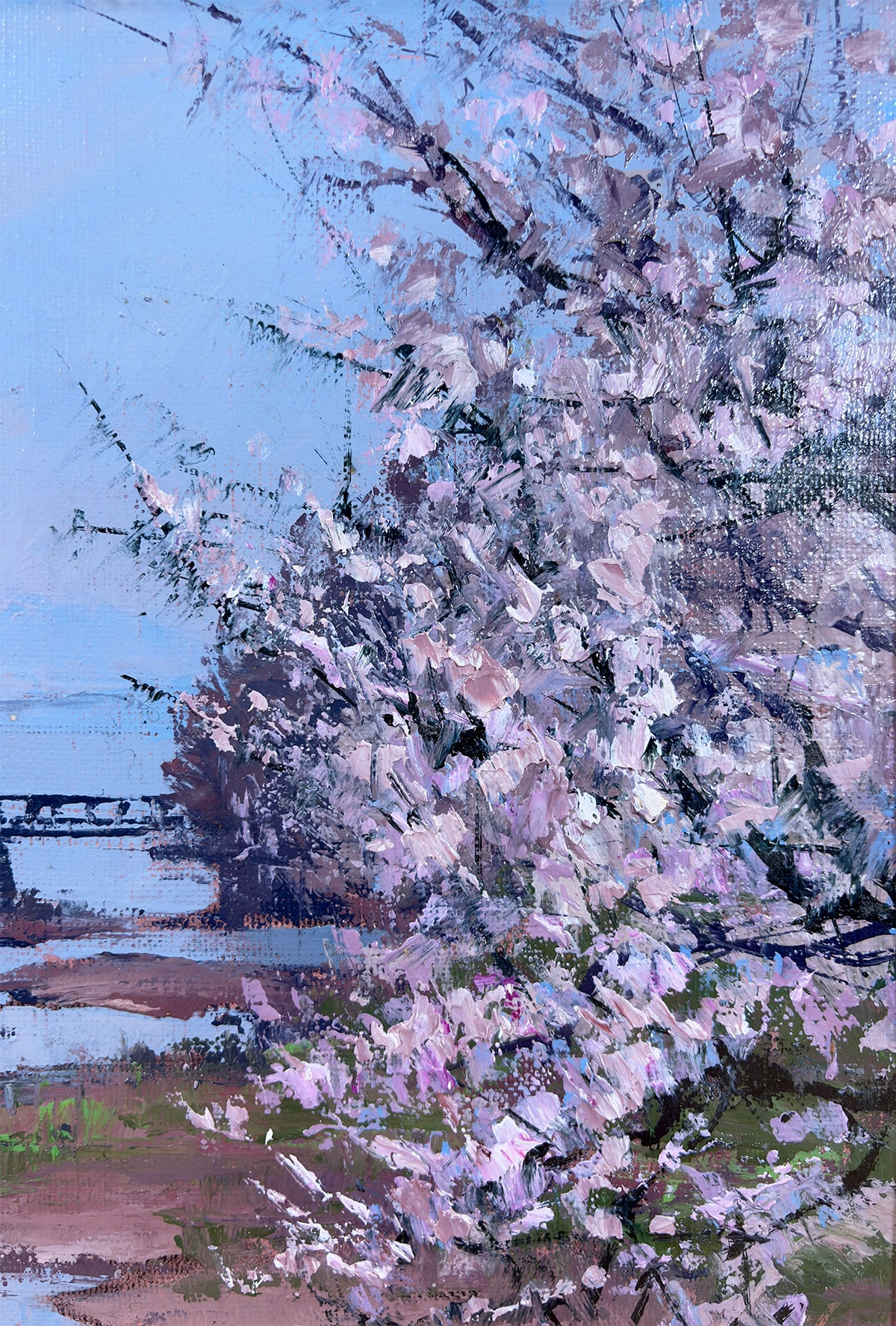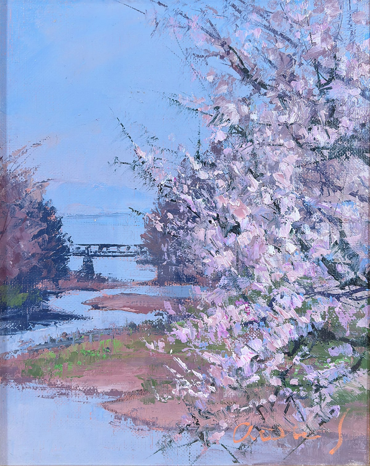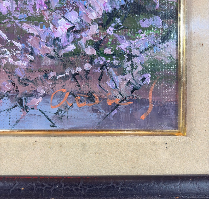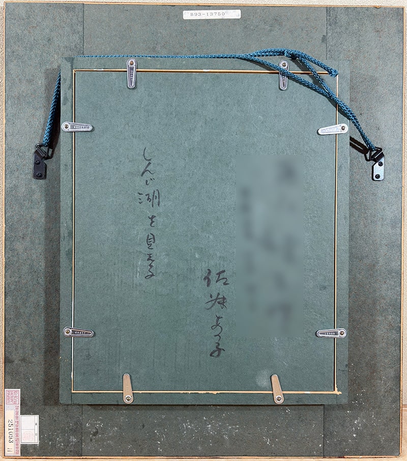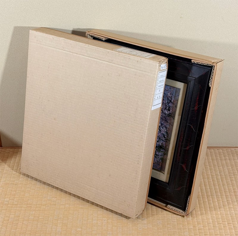 額縁の左上にアタリ、布張り面に汚れがありますが、鑑賞には気にならない程度です。