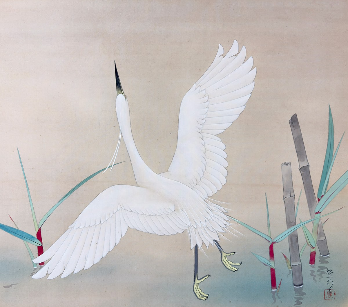 ●水辺に佇む白鷺を、清らかな筆づかいで描いた一幅です。