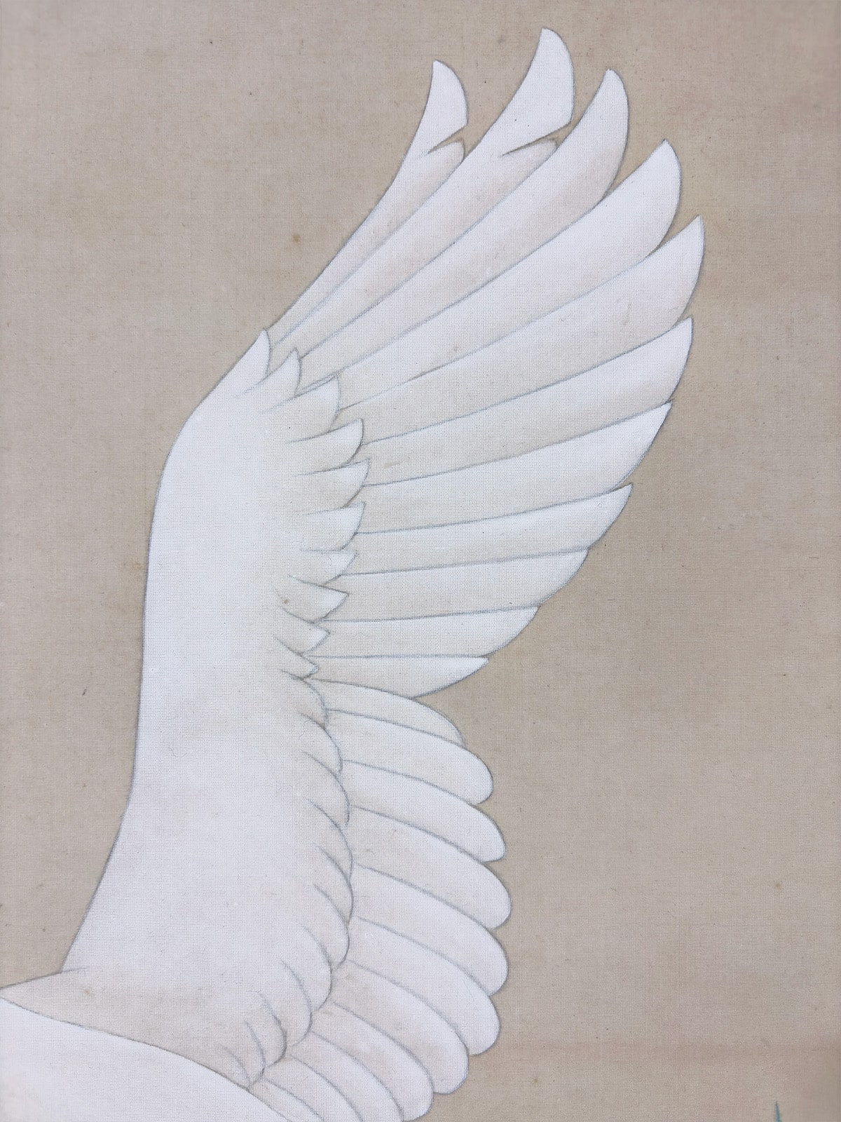 ●白鷺を大きく捉え、翼を広げた瞬間を大胆に切り取った斬新な構図が目を引きます。背景を控えめにすることで、羽根の柔らかな質感と白鷺の存在感がすっきりと際立っています。広い余白が生む静けさが、空間に落ち着いた清涼感をもたらします。