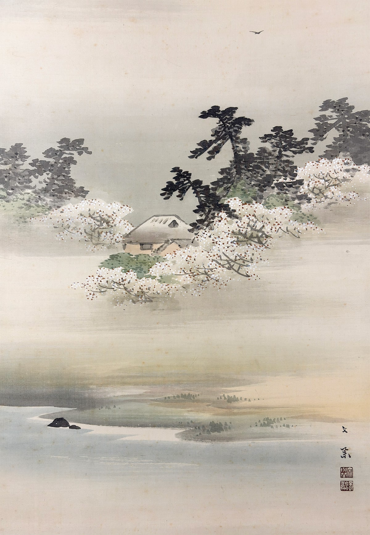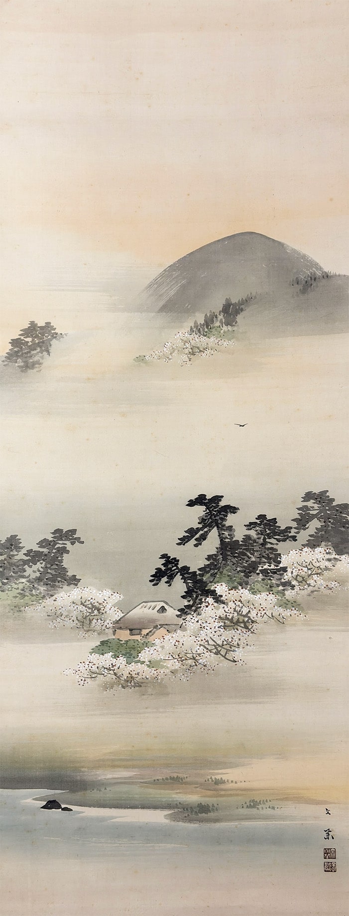 ●春の訪れを告げる山里の情景を、野村文挙先生が清澄な筆致で描いた一幅です。