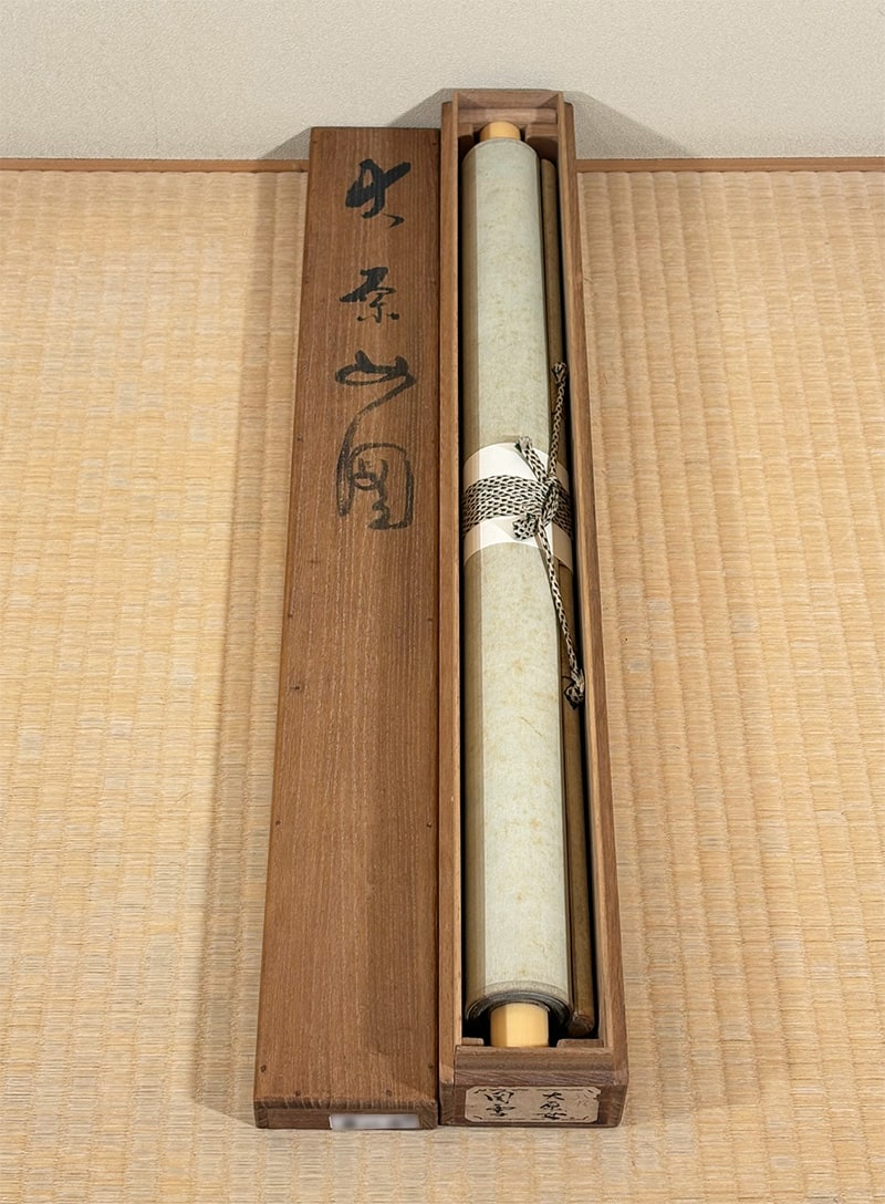 ●表装には上品な金襴裂地が用いられ、作品全体を格調高く引き立てています。