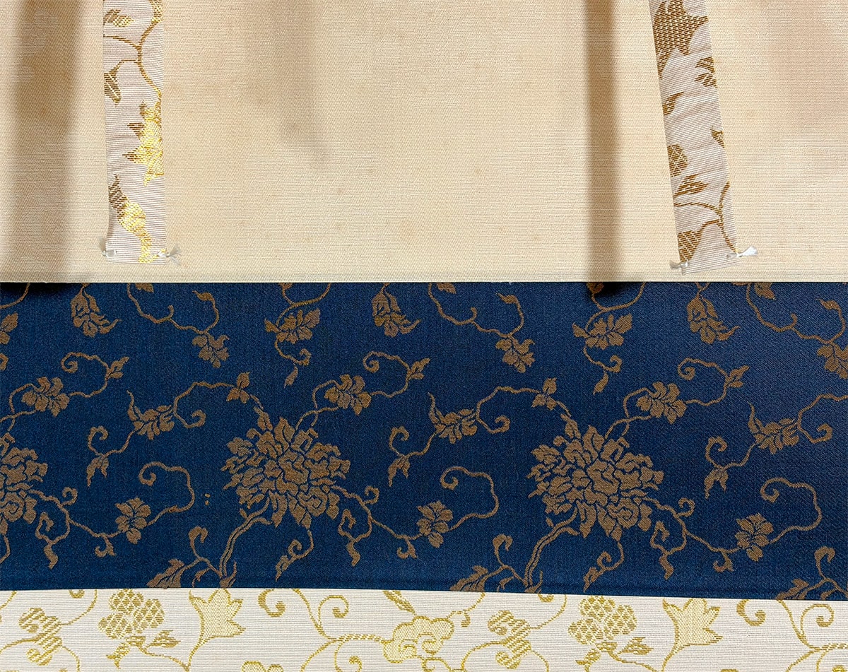 ●表装は金襴裂地を用いながらも主張しすぎず、作品の清らかな雰囲気を引き立てる仕立てになっています。