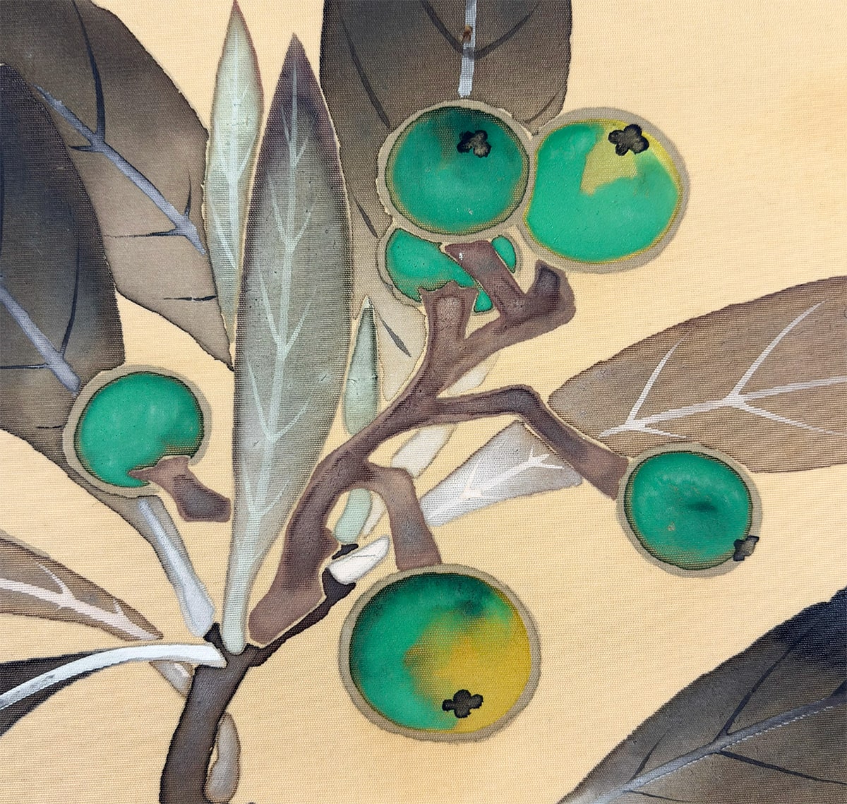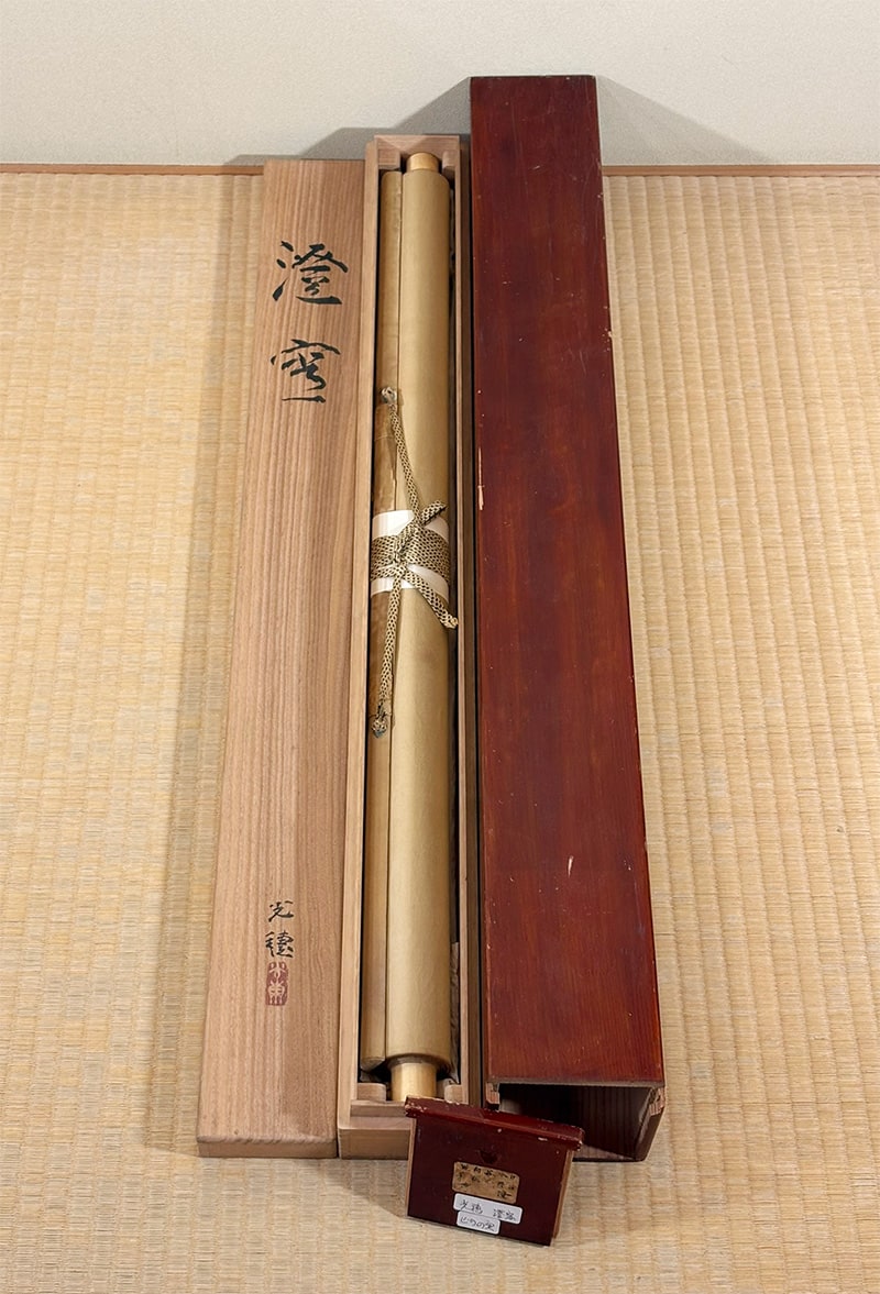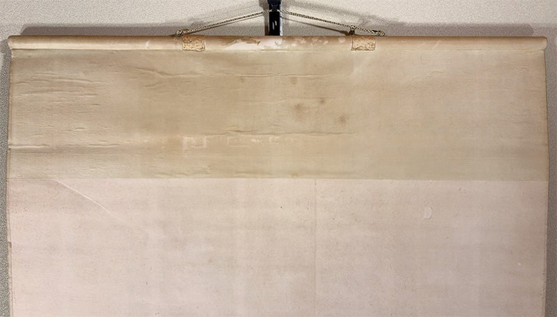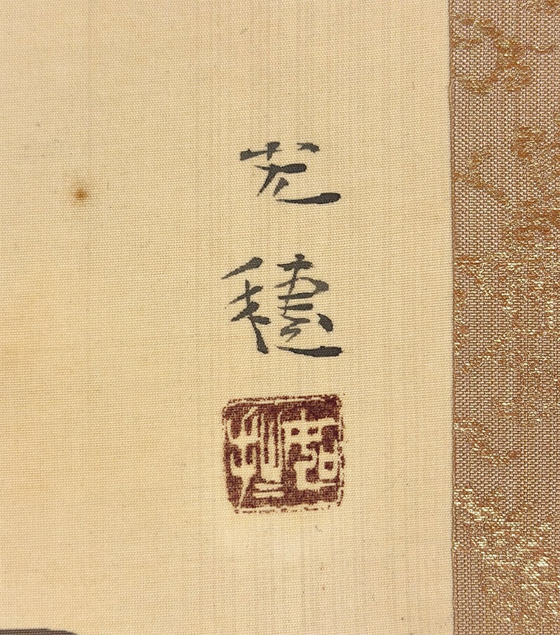 本紙にヤケ、表装の天に折れとシミがありますが、鑑賞には気にならない程度です。